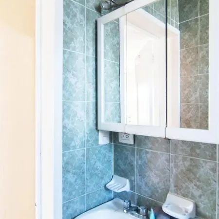 علاوة على ذلك، ستجد مجفف الشعر وملاءات الحمام والمناشف في الحمام.